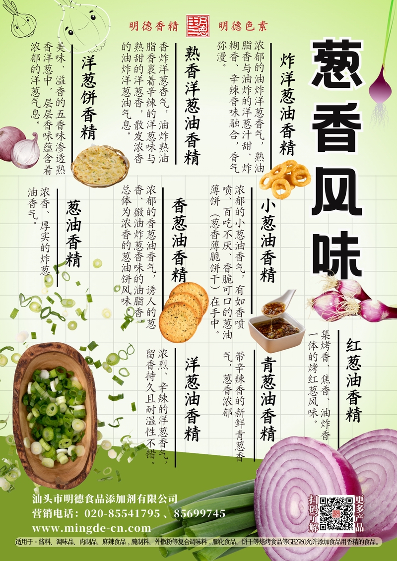 明德葱香风味香精 | 油香葱韵 覆盖多场景 汕头市明德食品添加剂有限公司推出的葱香风味香精系列,涵盖熟香洋葱油香精、炸洋葱油香精、小葱油香精、香葱油香精、洋葱油香精、青葱油香精、红葱油香精、洋葱饼香精、葱油香精等多种品类。产品呈现真实葱香、洋葱甜香与炸香特征,留香稳定持久,适用于酱料、复合调味、肉制品、焙烤以及休闲食品等B端应用。