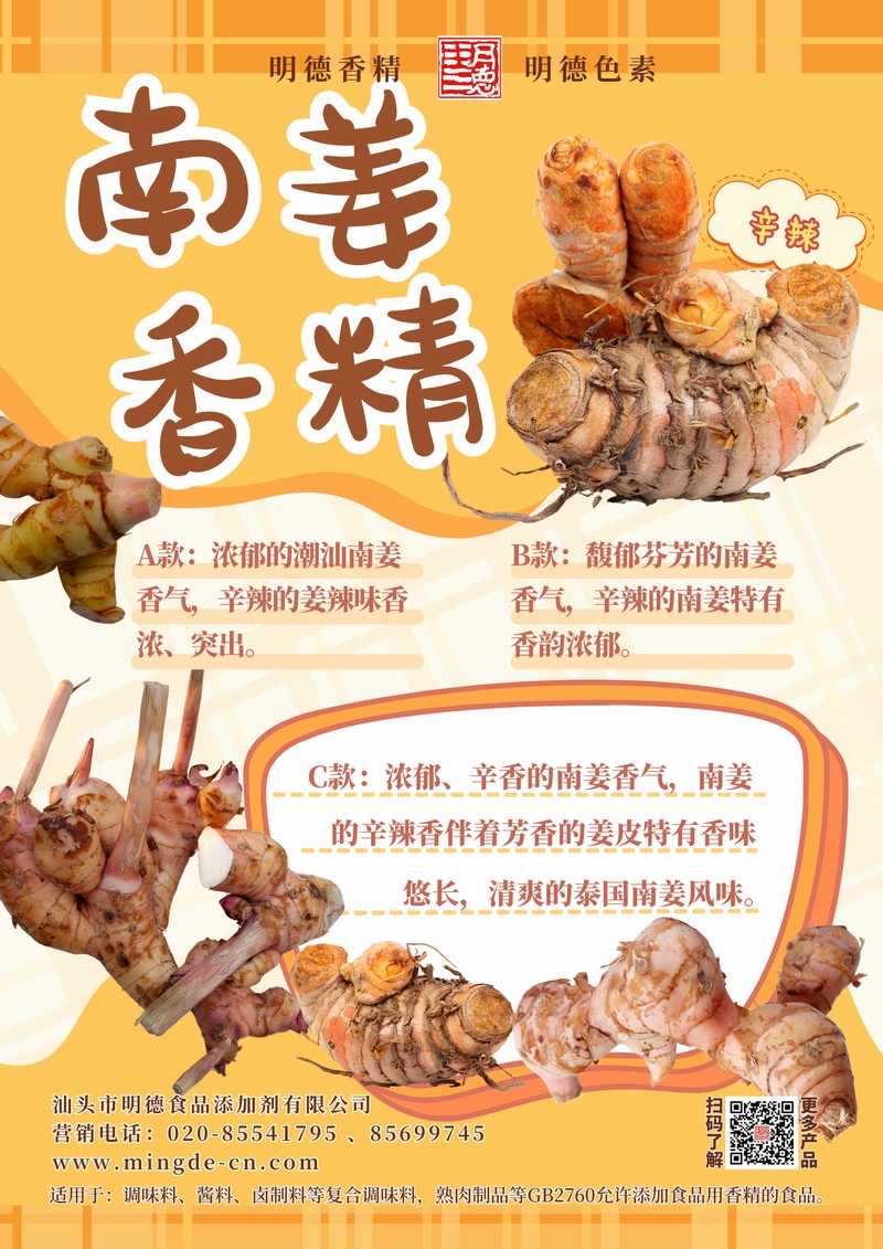 明德南姜香精 辛香鲜明 覆盖卤酱腌制与东南亚风味汕头市明德食品添加剂有限公司推出的南姜主题香精,覆盖多种品类,风味真实、留香稳定,适用于酱料、腌制料、调理食品、肉制品、卤制品、熟肉制品、复合调味等B端应用。
